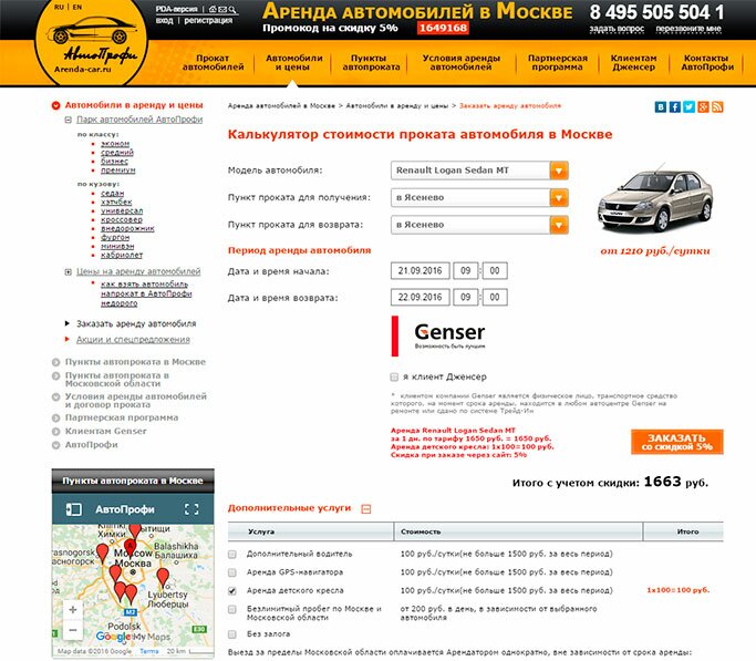 В АрендаАвто-клс предлагается прокат автомобиля недорого.«Рено Логан» на сутки обошелся нам в 1 520 рублей (без учета скидки для клиента Genser), а это очень дешево для авто напрокат в Климовске.